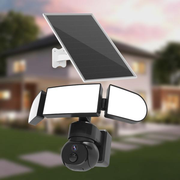 4. Along with a triple-head solar floodlight, this solar security camera has up to 1,500 lumens or 150W brightness, which